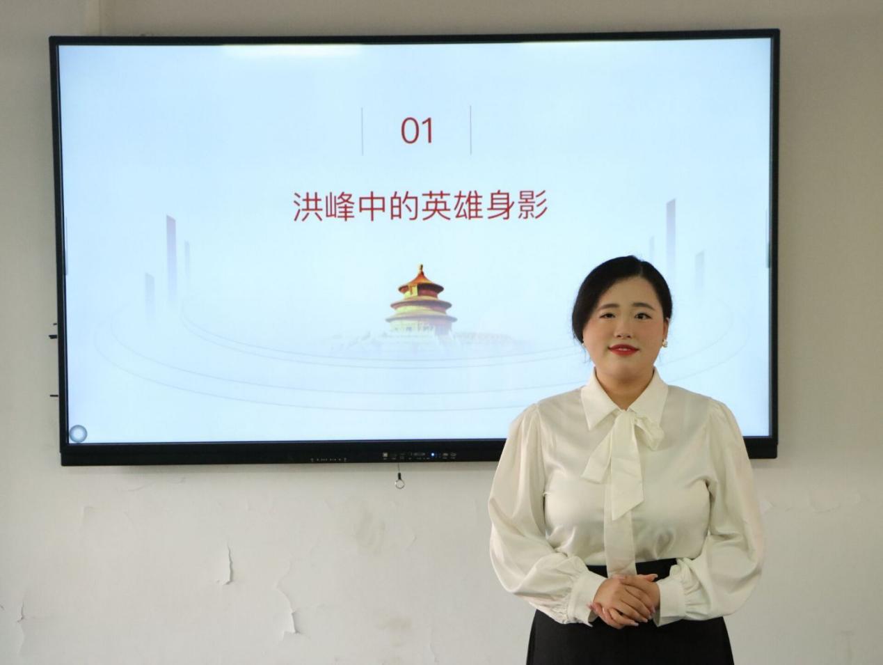 宣讲人李欣颖围绕“众志成城,凝聚人间大爱”展开讲述,从全国各界驰援灾区的感人场景,到郑州暴雨中普通群众挺身而出的凡人善举,生动诠释了“洪水无情人有情”的深厚情怀。