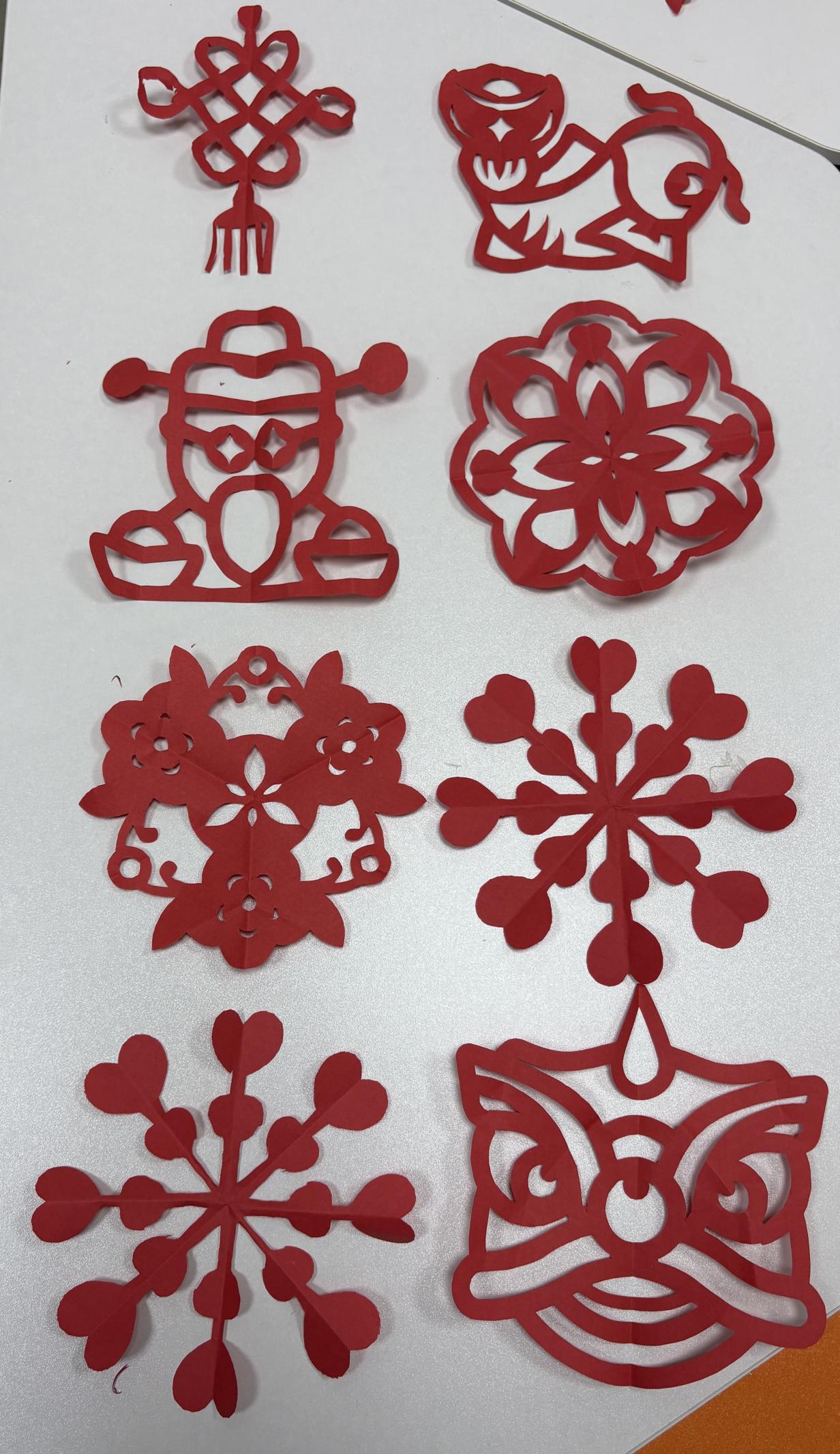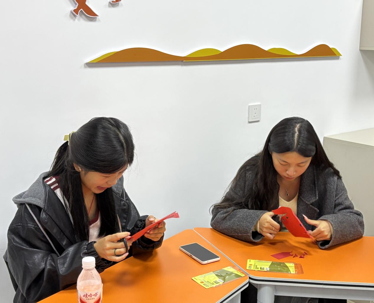 “没想到我也能剪出这么好看的作品!”一位刚刚完成“财神爷”剪纸的同学兴奋地展示着自己的成果,“整个过程特别投入,完全忘了烦恼,看着一张红纸慢慢变成想象中的样子,真的很有成就感。”不少同学也表示,这次活动不仅让他们掌握了剪纸的基本技巧,更体会到“专注做一件小事”所带来的平静与满足。有同学分享道:“以后感到压力大的时候,或许我就会拿起剪刀,剪一会儿纸,让心情慢慢静下来。”