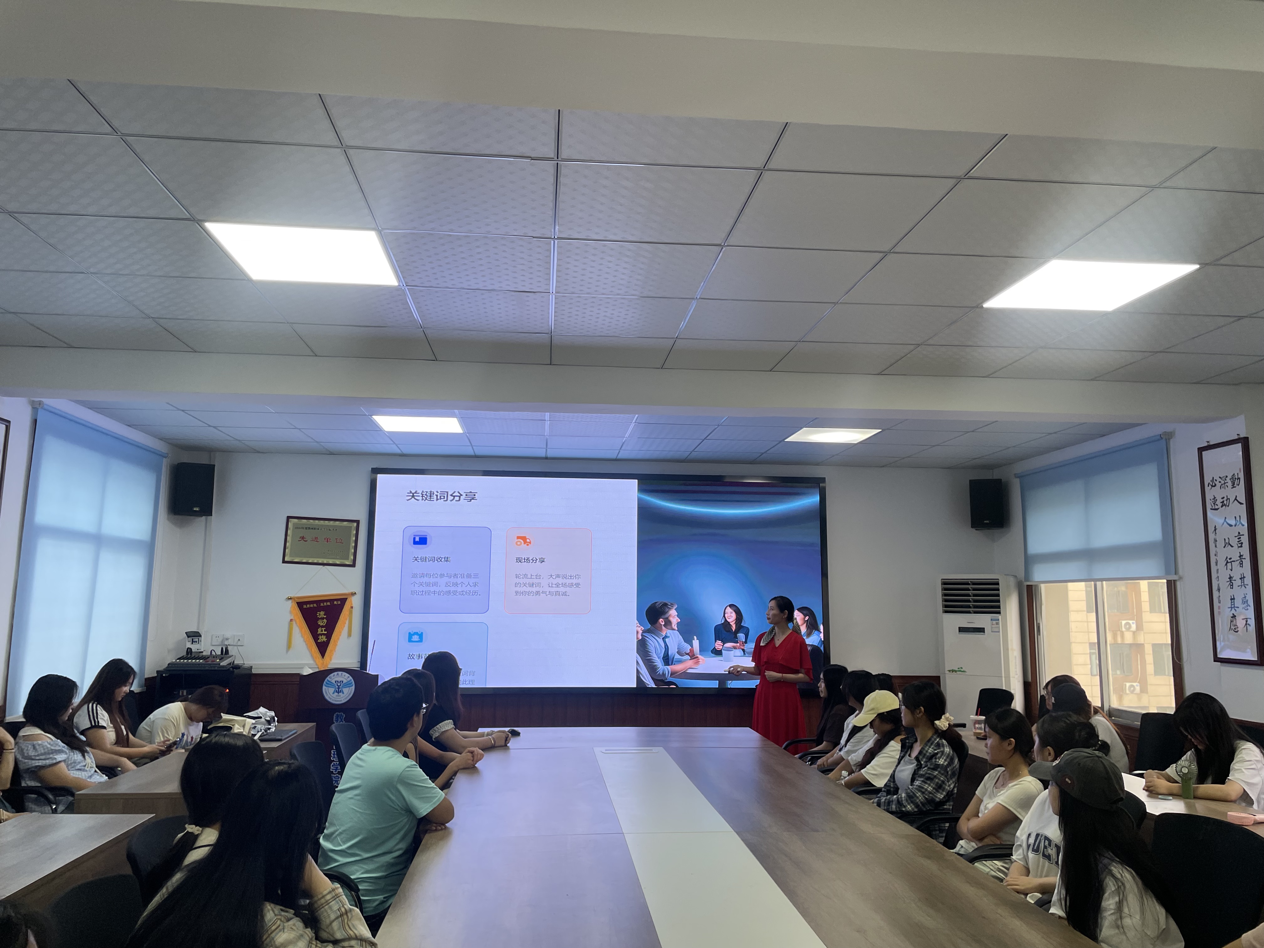 讲座以“我的求职关键词”破冰互动拉开序幕。同学们踊跃分享“迷茫”“坚持”“挑战”“机遇”等关键词,并讲述背后的真实经历,现场氛围真诚而温暖。何青老师指出,求职过程中的情绪波动是正常现象,关键在于如何识别、接纳并有效调节。