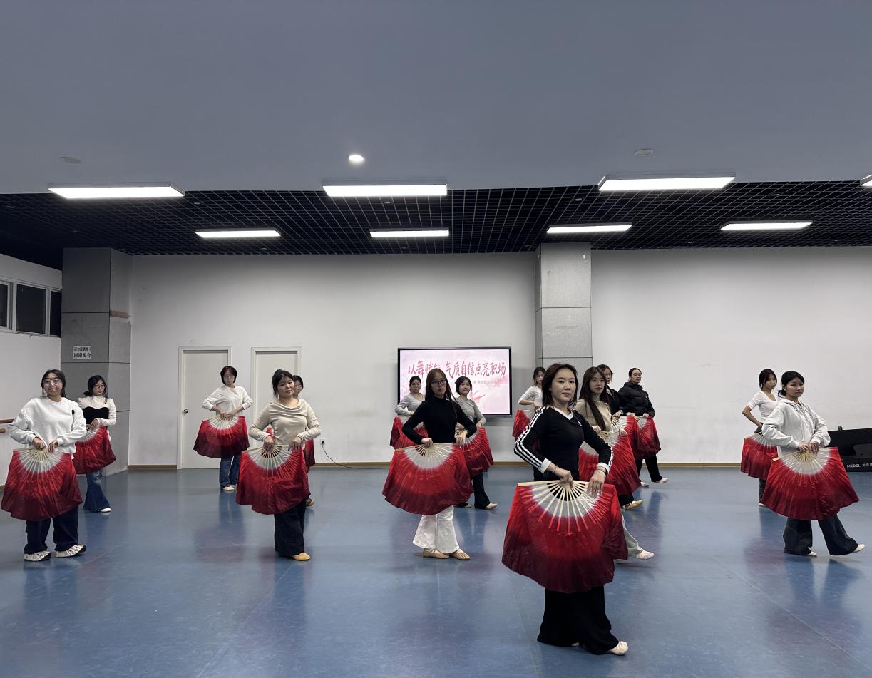 此次舞蹈实训课是“朋辈成长训练营”继高效表达、职业礼仪、AI应用等模块后,对“美育+就业育人”融合路径的又一次创新探索。看似是舞姿的练习,实则在潜移默化中锤炼着专注力、表现力、团队协作与抗压能力——这些正是现代职场所需的核心软实力。训练室里,每一次踮脚、每一次开扇,都是对“最佳状态”的练习;走出训练场,这份由内而外的从容与自信,将成为学子们求职面试、职场沟通中的“隐形名片”。正如学员们所言:“跳舞让我们学会挺直脊背,也学会在压力下保持优雅——这不仅是舞台需要的,更是职场需要的。”