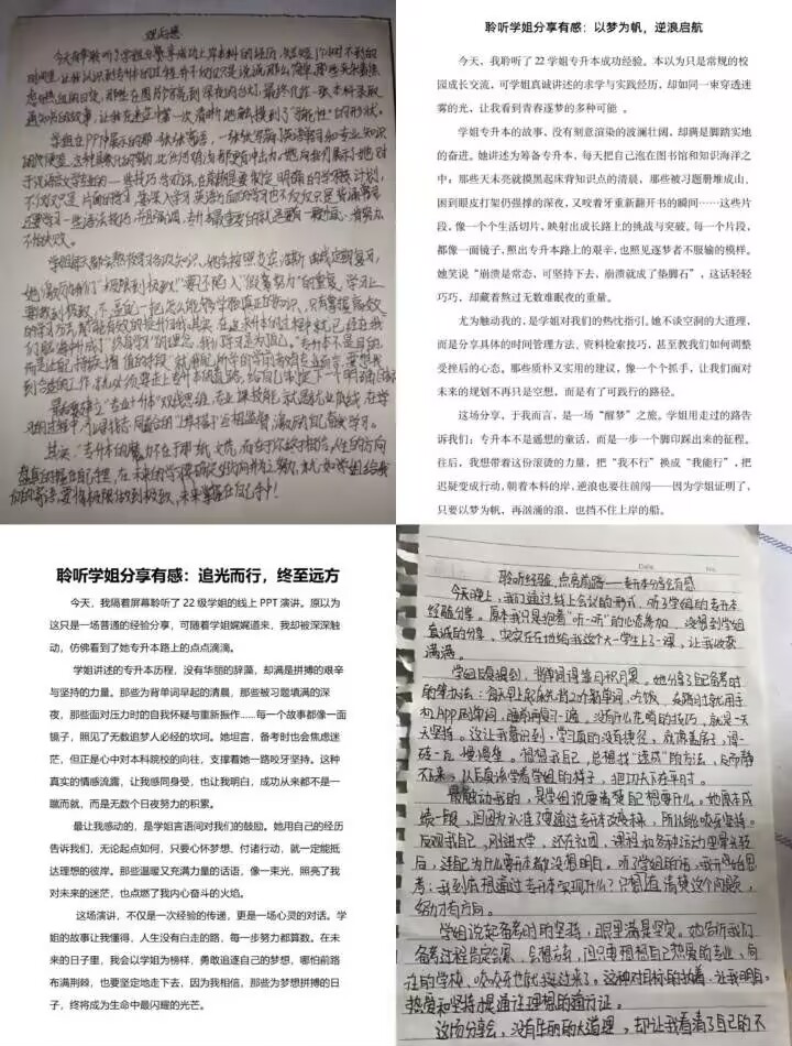 “专升本不仅是一场知识的较量,更是一次心性的磨砺。” 郑张学姐语重心长地寄语学弟学妹。她表示,备考路上需要 “刚柔并济” 的特质:既要有挑灯夜战、坚持不懈的 “刚强” 毅力,也要有善用方法、灵活变通的 “柔韧” 智慧;既要目标坚定、勇往直前,也要具备必备的生活常识。她特别提醒,备考途中最大的障碍往往是内心的杂念与孤独感,唯有心无旁骛、专注前行,才能跨越重重困难,抵达成功的彼岸。