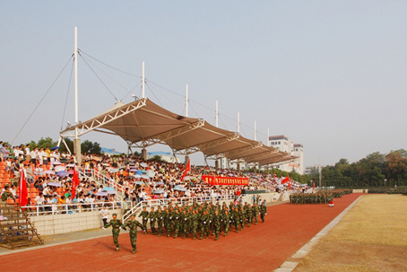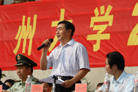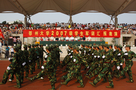 9月28日,鄂州大学07级新生军训阅兵式在学校一号教学区体育场隆重举行。学校校长田巨平、党委书记彭有轩等领导出席了阅兵式并检阅了军训学生方队。