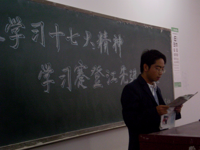 11月1日,建工学院全体学生党员在E207教室召开学习党的十七大和我校蹇登江同学先进事迹大会。学院号召全体学生“深入学习十七大精神,争做蹇登江式大学生”,要求全体学生党员以身做则,严格要求自己,在广大学生中起带头模范作用。会后学院党支部要求每名同学手写两千字的学习十七大精神思想汇报和一千五百字的学习蹇登江同学先进事迹的心得体会。