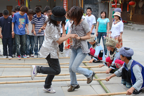 竹竿舞,特别好玩,同学都跳的很开心疯狂。