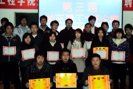 比赛从12月4日开始至12月23日结束,历时近二十天。来自08、09级各班的共30个代表队参赛,各代表队成员相互协作,相互协调,各展其能,评委老师及嘉宾的精彩点评也为本次比赛添上了精彩的一笔。经过激烈的角逐,最终09测量班、09建工2班、08建工1、2班代表队分获冠、亚、季军。,09旅游班获得最佳组织奖。其中09测量班的阎向彬获得了最佳辩手称号。