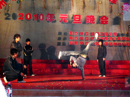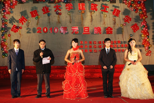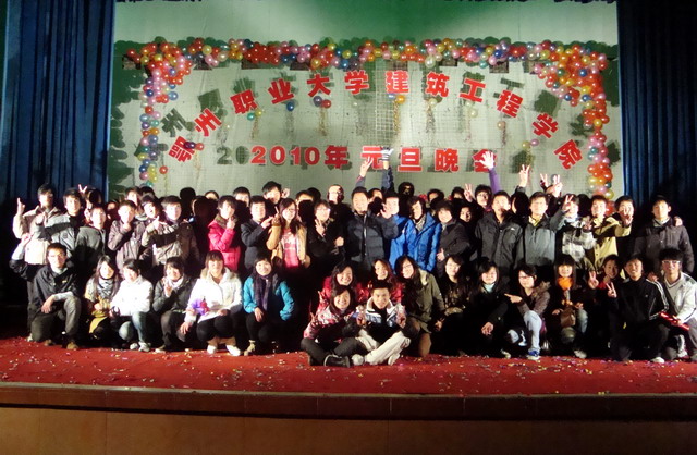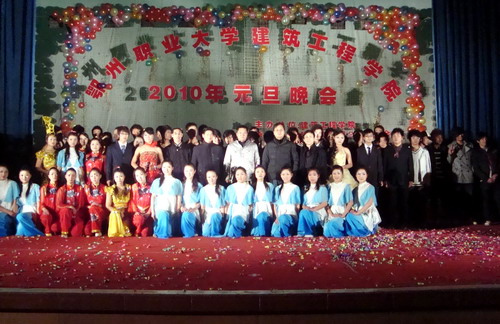 2009年12月29日晚7:00,鄂州职业大学艺术楼礼堂内一片欢乐的海洋,建筑工程学院2010年元旦晚会在此隆重举行。出席本次晚会的领导有校长助理胡海平、建工学院院长刘辉、学工处处长马凌军、保卫处处长朱冰、建工学院常务副院长熊汉锋、建工学院党总支副书记陈永红、建工学院外聘兼职教授、建工学院全体辅导员及其他各院系师生代表。