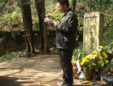 建工学院学生党员清明节西山陵园扫墓 “桃花红雨英雄泪,碧海丹霞志士心,今日神州看奋起,陵园千古慰忠魂。”4月4日正值清明,是我国人民缅怀先人、烈士的节日,我院全体学生党员自发来到彭烈士楚藩之墓,缅怀革命先烈。 彭烈士楚之墓,墓碑很简陋,位于鄂州市西山公园,道墓在灵泉寺后山上。彭楚藩是湖北鄂州华容镇人,早年接触进步思想,立志推翻清王朝的腐朽统治,1911年10月9日,孙武在汉口起义事泄,彭楚藩慷慨激昂,痛斥清政府无能,恼羞成怒的清人于10日晨于督署东辕门外将彭楚藩斩首示众。就彭楚藩浓面的悲壮气氛却让在场的每一位同学感到震撼而浓重。随后学生党员向彭烈士之墓敬献花圈、默哀三分钟,轮流敬献小白花,以缅怀革命先烈,在我院学生党支部副书记陈康的带领下,面对彭烈士之墓进行了入党宣誓。 通过这次扫墓,激励着在场的每一位学生党员,学习先烈的精神,并时刻以这种精神来鞭策自己,提醒自己。我院每年都会举办扫墓活动,以鞭策和鼓励每一位建工学子。 作者:陈永红 责任编辑:邓桃丽