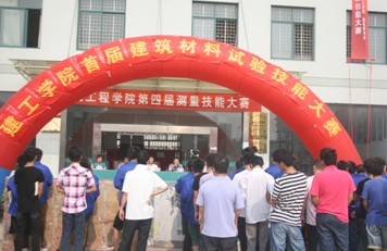 建工学院举办首届建筑材料试验技能大赛 为了“喜迎十八大”,积极推进我校骨干高职院校建设,加强学生职业能力的培养,提高我院道路桥梁工程技术专业学生的技能操作水平。经过初赛选拔,4月14日上午9时,我院首届建筑材料试验技能大赛决赛在三号教学楼如期举行。参加本次决赛选手共有12组36名选手。常务副院长熊汉峰、院党总支书记陈永红、副院长黄世宽出席观摩了本次大赛。 此次大赛设计的试验项目包括砂石、水泥、砂浆、水泥混凝土、沥青混合料等方面,大赛经过一天的激烈的角逐,最终11级道桥4班的梁超代表队获得了首届建筑材料试验技能大赛的冠军。
