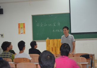 为提高12级新生的安全意识,2012年10月14日晚。由建筑工程学院学生党支部组织发起的安全知识宣传活动在12级各班成功举行,建筑工程学院学生党支部书记丁桦和全体学生党支部成员参加了此次活动。