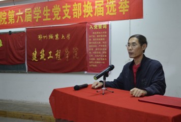 2012年10月26日下午2点整,经过院党总支批准,中共鄂州职业大学建筑工程学院学生党支部新党员入党宣誓及第六届换届选举大会在行知楼C501教室正式举行。出席本次大会的院领导有熊汉锋、龚伟、杨国根、汪国兵以及各班级辅导员,大会由学生党支部书记丁桦主持。