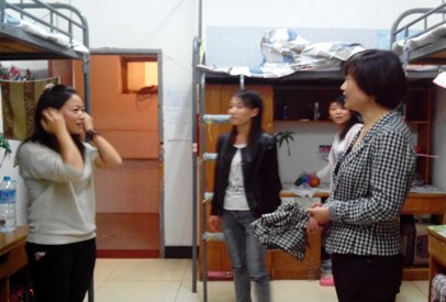 2013年9月5日下午六点,迎新现场刚结束,院领导们便紧接着步行至学生宿舍,对入住男生宿舍和女生公寓的2013级新生进行了看望与慰问。本次同行的有院长余成英教授,副院长杨国根副教授,副书记龚伟老师,团总支书记潘世超老师,辅导员汪国兵老师和王熠老师。亲切的问候,让离开家乡初入大学的2013级新生们倍感温暖。