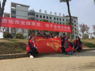 为增强校内大学生的卫生习惯行为养成,深化环保理念,2016年3月27日下午,我院青年志愿者协会在校园内举办主题为“席地而坐怨草绿,信手涂抹白璧嫌”的环保活动。