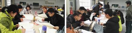 (教师评委正在认真批阅试卷、登分组正在紧张工作)