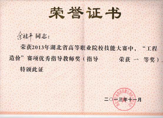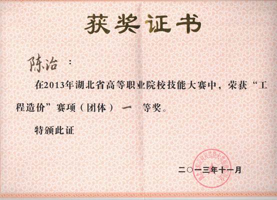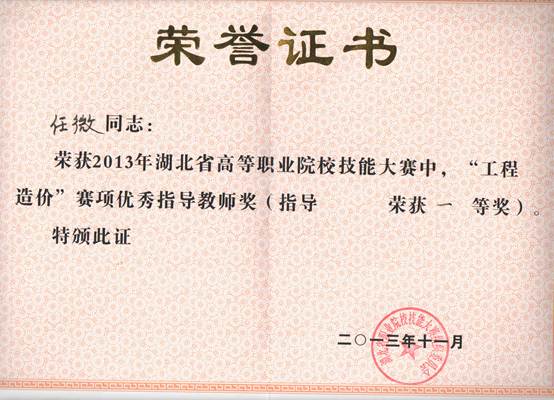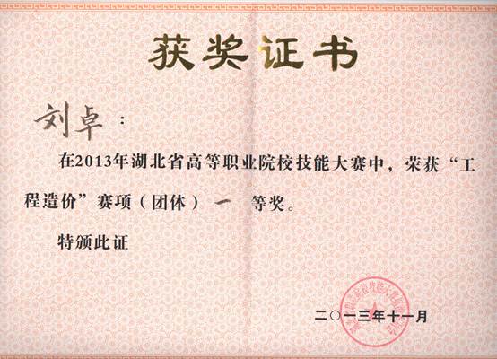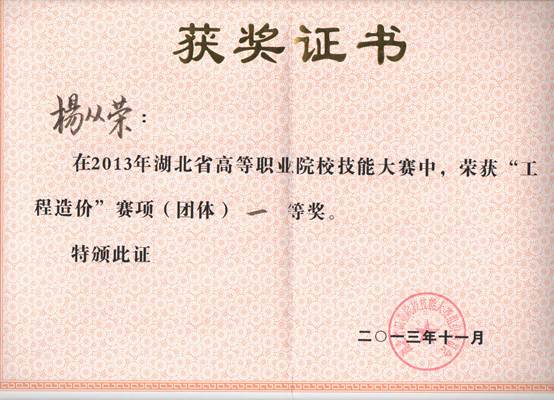 2013年11月我院组队参加湖北省第一届高职高专工程造价技能大赛和2013年全国高职院校“斯维尔杯”工程造价基本技能大赛,均取得佳绩。