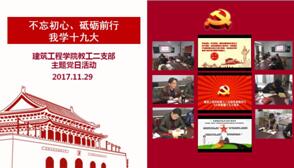 根据学校党委关于在“两学一做”学习教育和支部主题党日的总体部署,为深入学习宣传贯彻党的十九大精神,切实发挥领导干部骨干带头作用、党支部战斗堡垒作用和党员先锋模范作用,我院各党支部于11月29日下午开展了“不忘初心、砥砺前行,我学十九大”支部主题党日活动。