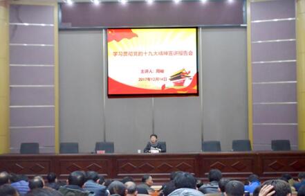周岫从“十九大盛况和成果”、“我们鲜明的旗帜”、“新时代、新思想、新判断、新方略新在哪里,丰富的内涵是什么?”“十九大报告十三个部分主要的精华和我们如何解读”等四个方面做了一个系统全面、准确精彩的宣讲报告。