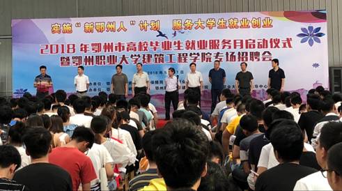 5月17日,由市人社局、鄂州职业大学主办的2018年鄂州市高校毕业生就业服务月启动仪式暨鄂州职业大学建筑工程学院专场招聘会在建筑工程学院实训心举行。