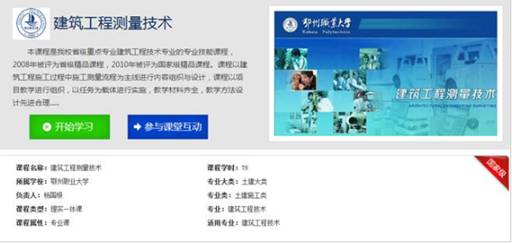 2016年《建筑工程测量技术》课程被确认为第一批“国家级精品资源共享课”称号