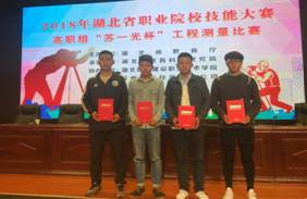 2018年5月,在全国职业院校技能大赛“工程测量”赛项中获全国三等奖,2018年11月湖北省职业院校技能大赛中,我院学生在 “工程测量”赛项在获二等奖奖;2018年5月26日-27日,全国第九届全国中、高等院校“斯维尔杯”建筑信息模型(BIM)应用技能大赛总决赛中取得《全能奖》三等奖、《工程造价专项奖》三等奖、《工程设计专项奖》二等奖。