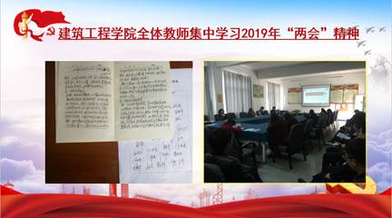 3月28日下午,建筑工程学院党总支组织全体教职工在行知楼E403会议室,开展2019年全国两会精神专题学习会,本次学习会由党总支副书记龚伟进行宣讲。