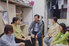 11月3日晚,校党委书记万国光深入我院2018级室内三班,全程参加并指导《创建全国文明城市 我们在行动》主题班会活动,带头宣传普及社会主义核心价值观。11月3日、11月20日万国光多次深入东四栋、东十三栋学生宿舍,与同学们亲切交谈,面对面地聊家常、聊大学生活、聊文明创建、聊大学生行为养成,指导同学们通过建设文明宿舍,规范行为养成,从点滴做起、以实际行动践行社会主义核心价值观。