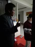 (万国光在宿舍与学生亲切交谈、指导文明寝室创建;左一:东十三栋W410寝室,右一:东四栋105寝室)