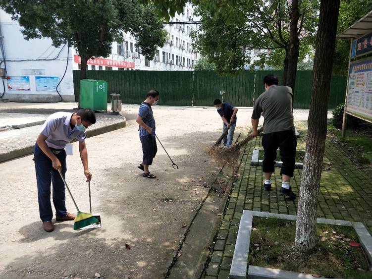 为响应鄂州市创建全国文明城市的部署,创建“干净、整洁、平安、有序”的校园环境,7月1日下午,支部党员深入学生宿舍区,重点清除路面杂草及绿化带内枯枝、垃圾等。