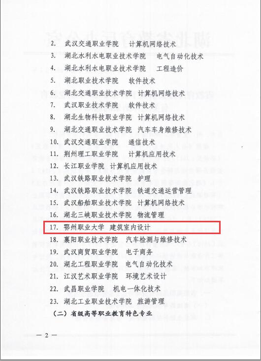 近日,湖北省教育厅发布2020年省级品牌专业与特色专业验收通过名单(鄂教职成办函【2021】2号),我院再增加一个省级品牌专业:“建筑室内设计”专业荣获省级高职品牌专业称号。