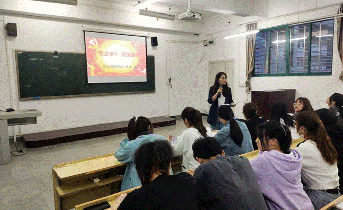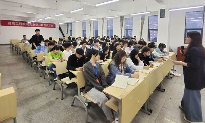 5月19日晚7:00,由教工一支部承办的建筑工程学院党史学习教育夜学班第8次集体学习在三号教学楼C401如期举行,学院全体学生党员以及入党积极分子等110余人参加了学习。此次学习的内容是“艰苦奋斗 奋发图强”,由教工一支部书记霍瑛老师主讲。