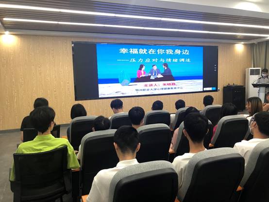 朱晓静围绕大学生如何正确应对压力和调适情绪、压力造成的严重后果两方面内容进行了深入浅出的讲解,并从生活和学习两方面阐述了压力的来源,引用“压死骆驼的最后一根稻草”谚语故事和笑星“憨豆先生”的亲身经历为例,指出过重心理压力对个体的严重影响,不良情绪反应可能造成的身体危害和引发的抑郁症、焦虑症、恐惧症等心理疾病。
