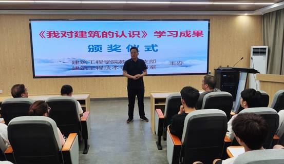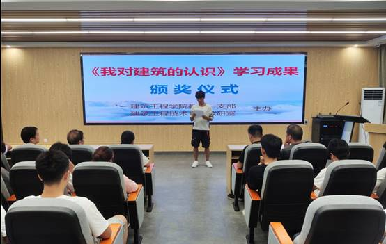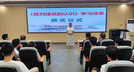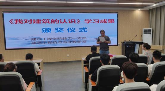 7月8日下午,在建筑工程学院实训中心C101报告厅,进行了由教工一支部和建筑工程技术教研室联合主办的《我对建筑的认识》专业学习成果汇报活动的颁奖仪式,学院主要领导、专业负责人、支部党员教师、相关专业学生参加活动,颁奖仪式由教工一支部书记霍瑛主持。
