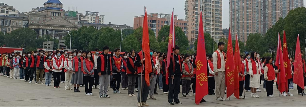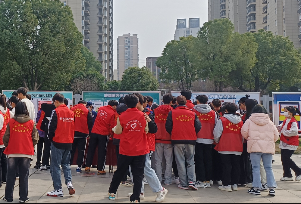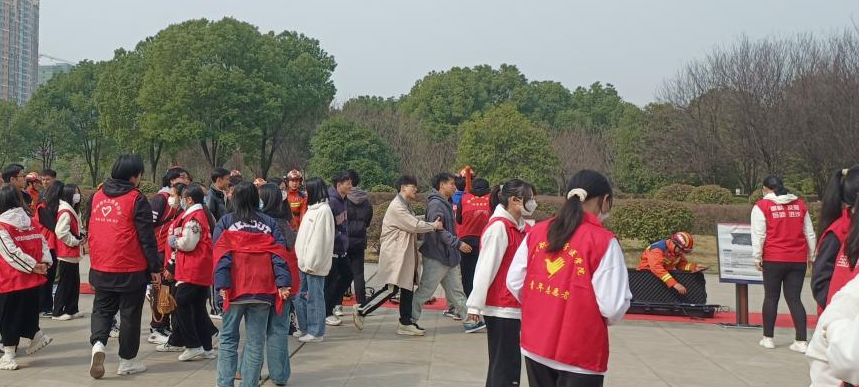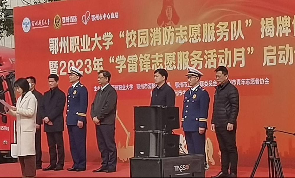 3月4日上午10鄂州职业大学“校园消防志愿服务队”揭牌仪式暨2023年“学雷锋志愿服务活动月”启动仪式于五号教学楼前的广场上正式开始。校党委书记万国光、团市委书记潘黎、市消防救援支队队长刘俊、市卫健委党组成员高小威等出席启动仪式。