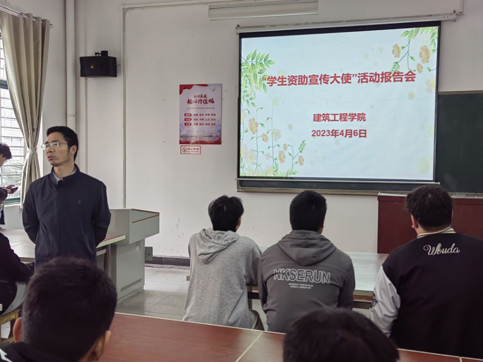 资助筑梦,星火燎原。为进一步发挥学生资助宣传大使的励志引领作用,广泛宣传资助好政策,传播资助好声音,2023年4月6日下午两点,建筑工程学院在E211教室开展“学生资助宣传大使”选聘活动。学院副书记吴英凯、团总支书记张奎、资助联络员程良珍老师及学院全部受资助同学参与。