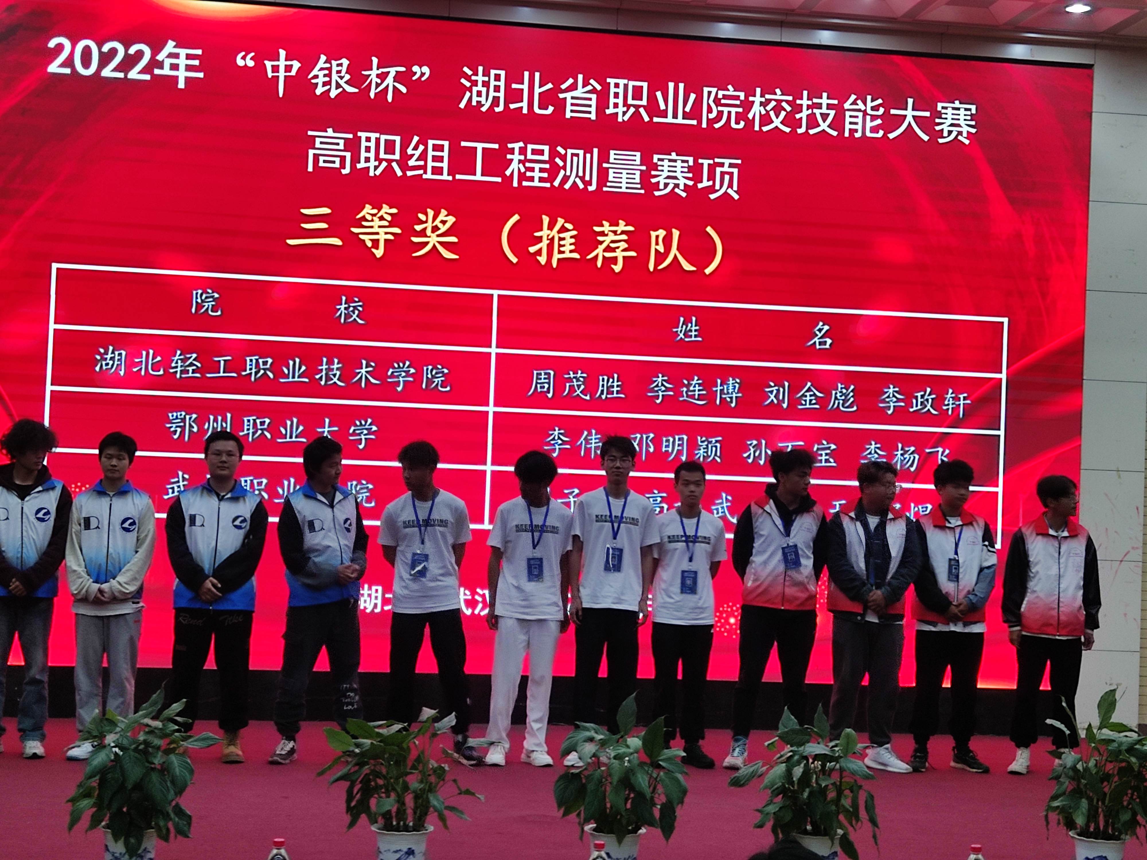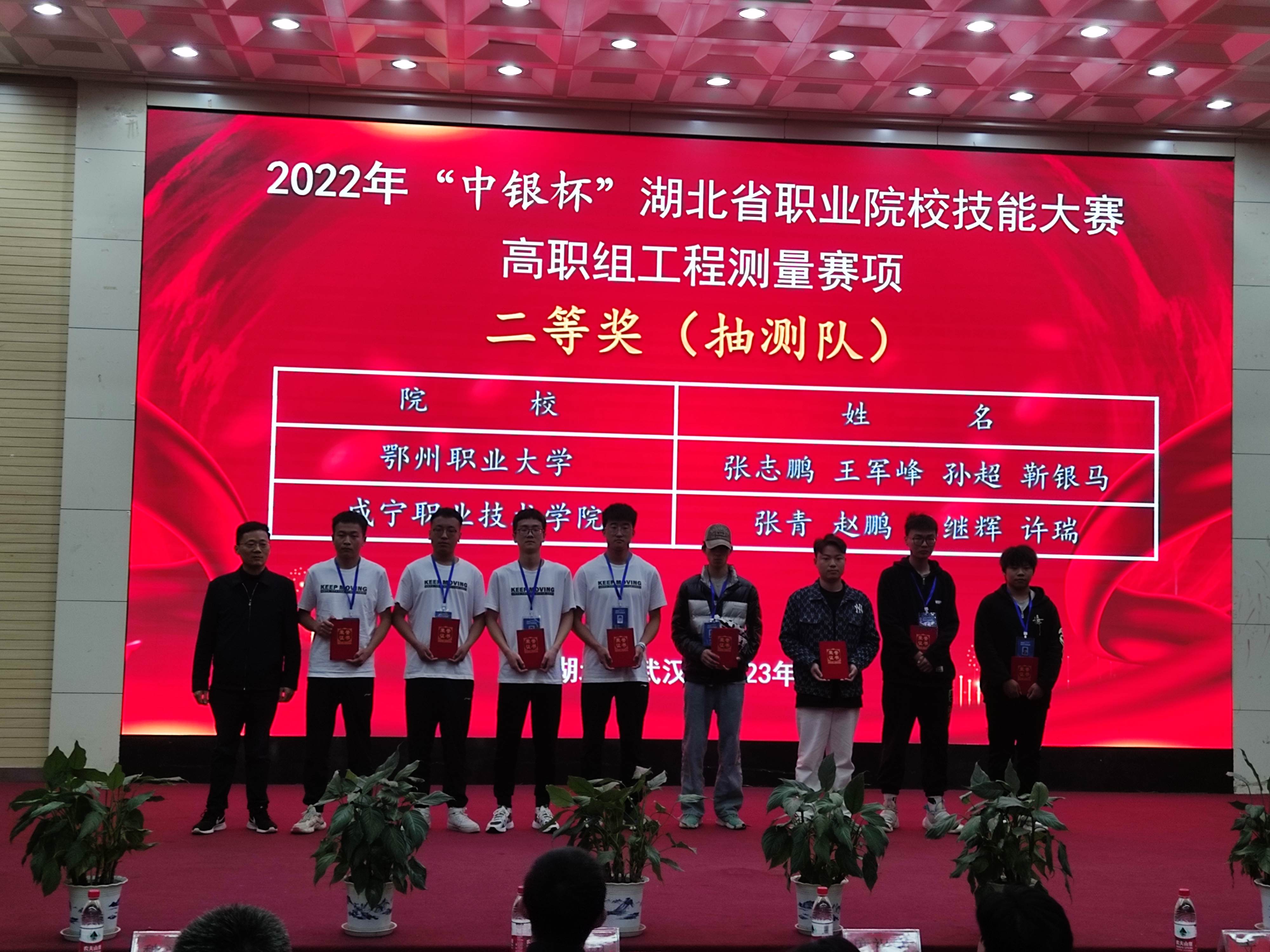 在4月24日刚刚结束的2022年湖北省职业院校技能大赛高职组“工程测量”赛项中,由建筑工程学院2021级工程测量技术专业张志鹏、王军锋、孙超、靳银马、李扬飞、李伟、邓明颖、孙万宝等八位选手组成的鄂州职业大学代表队,与全省高职院校76支队伍304名参赛选手同台竞技,展示了精湛的专业技能和顽强拼搏的精神,获大赛推荐组三等奖、抽测组二等奖。