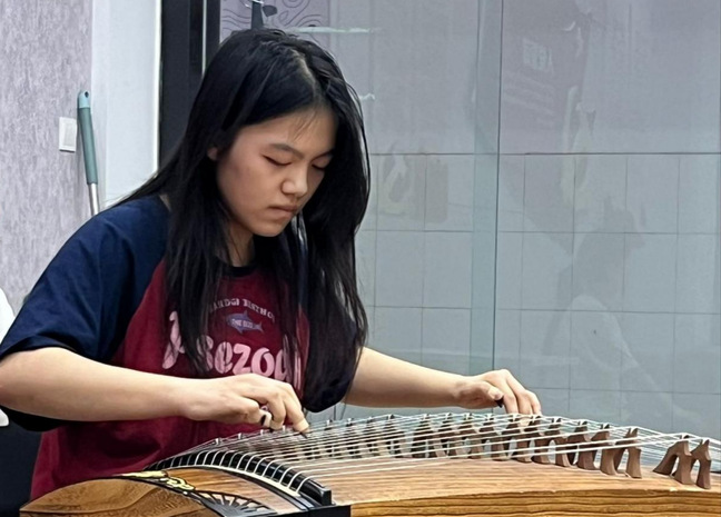 活动伊始,古筝的悠扬旋律便飘荡在“一站式”社区的每个角落。蒋珊珊同学以精湛的技艺,为我们带来了一场古筝演奏的视听盛宴。她的指尖在琴弦上跳跃,仿佛是在诉说着一个又一个古老的故事,将观众带入了一个充满韵味的世界。