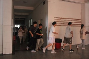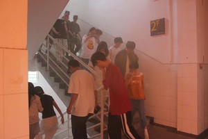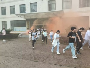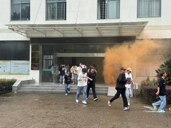 上午9时20分,消防模拟演练正式开始。急促的警铃响起,建筑工程学院三号楼值班老师迅速查看、快速定位,发现三楼东边教室已烟雾弥漫,火势失控,随后立即上报、开启应急广播、启动应急疏散预案,按照“安全第一、就近逃生”的疏散原则,引导楼内师生沿应急疏散安全路线快速撤离。