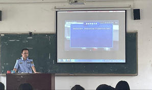 活动现场,湖北省交通运输厅综合行政执法局武黄支队第二大队内业管理员张星火为同学们进行现场讲解。张星火老师通过精心准备的讲解资料,用通俗易懂的语言向学生们详细介绍交通安全及交通运输执法的范畴。他通过图文并茂的PPT 展示、真实案例视频播放等多种方式,全面且深入地为同学们讲解了交通运输执法的各项内容。从交通运输规则的重要性,到不遵守规则可能导致的严重后果,以及如何配合交通运输执法工作等方面,进行了细致的阐述。