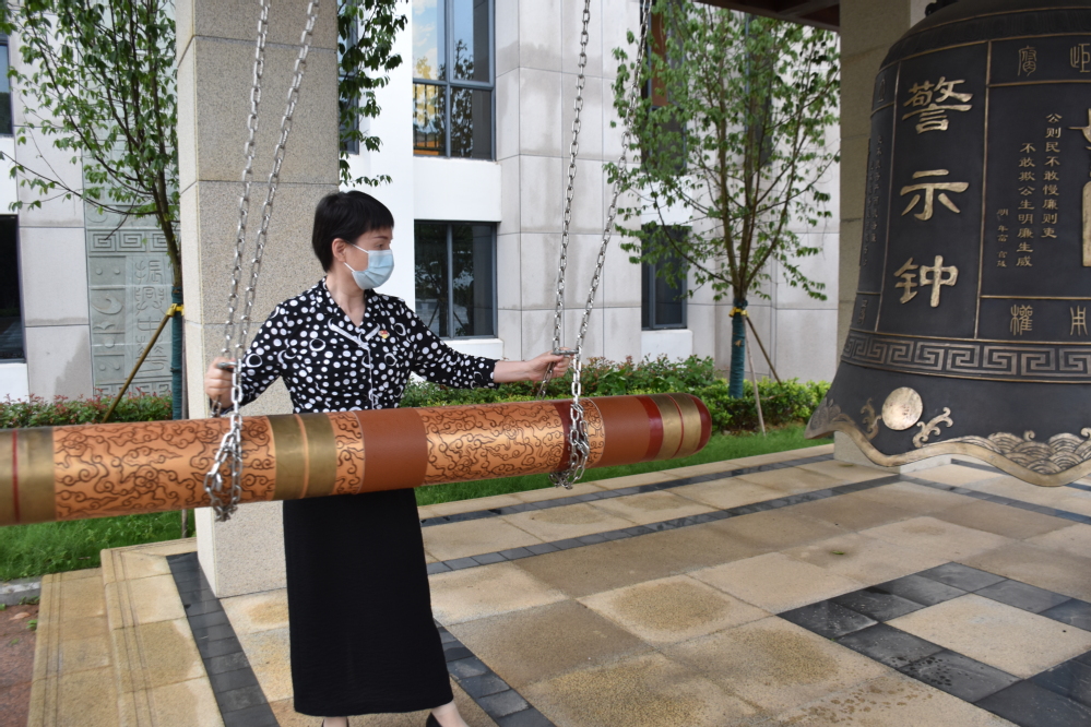 在警示广场,全体参观人员列队肃立,校党委副书记周岫敲响警示钟,在警钟长鸣里,警醒自己明底线,知敬畏,防微杜渐,永葆党员干部清正廉政的政治本色。