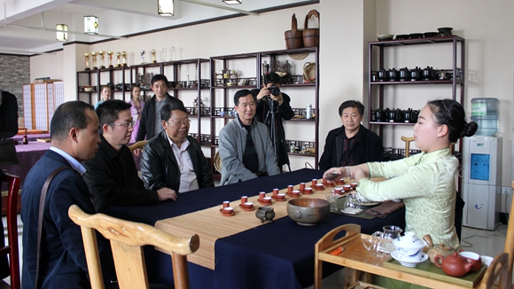 三峡职院副校长曹孙志率校办主任林红平、生化院长刘方玉、继教院长杨红军等对杨殿生一行表示热烈欢迎。曹校长介绍了三峡职院的办学概况及社会培训开展情况。茶艺专业带头人宋晓东就茶艺表演实训室建设、管理及茶艺师培训的作法与经验作了发言。双方与会人员就高职院校如何利用专业优势、实训设备等服务地方经济建设,进行了深入的探讨。