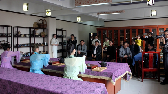 杨殿生一行还在曹校长等三峡职院领导陪同下,深入茶艺表演实训中心参观,并观摩了三峡职院14级、15级学生茶艺表演队的表演,学生队员的优良表现,充分展示了三峡职院茶艺师培训的卓越成效。为我校茶艺表演实训室建设、管理及茶艺师培训提供了可供借鉴的经验。