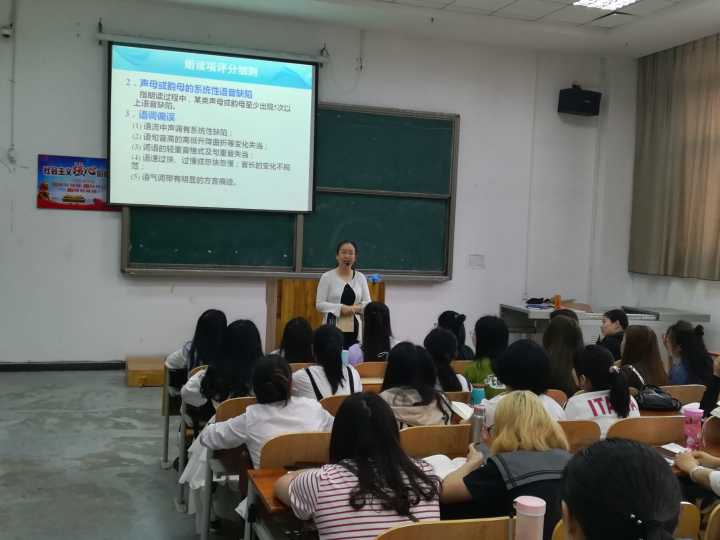 2019年春季普通话测试培训班在5号教学楼组织举行, 培训时间为5月1 8日 、19日、25日 、26日共四天。此次培训班由校培训鉴定中心会同鄂州市普通话培训测试工作站共同组织。来自校内各院系的学生和市内部分中小学、幼儿园的老师共计1000余人参加了此次培训。承担培训任务的教师由我市有丰富培训经验的普通话测试员组成,我校翁燕、李瑾等二名国家级普通话测试员承担了培训任务。培训依据湖北省语言文字工作委员会组编的<<普通话培训测试指要>>,重点讲授了计算机辅助普通话水平测试流程和普通话水平测试应试要领、剖析了普通话基础知识和普通话水平测试模拟试题。为学员参加普通话水平测试提供了有效的理论和实践支撑。