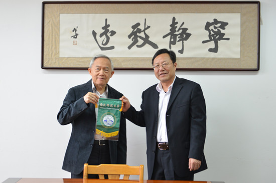 此行是侨光科技大学第三次来访,陈伯涛先生带来了邀请函,热情邀请我校参加侨光科技大学于今年10月举行的50周年校庆活动,并赠送了侨光科技大学的校标以及由生活创意设计系师生制作的作品——侨光校门纸浮雕。