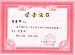 近几年来,计算机学院教师多次获得学校教学成果奖、说课比赛、说专业比赛等奖励,2011年组队参加全国大学生数学建模竞赛并取得全国二等奖的优异成绩,2012年获湖北省第十四届自然科学优秀论文二等奖,该奖是唯一一所获二等奖及以上奖励的高职院校,2013年获湖北省高职院校计算机网络技能大赛三等奖。