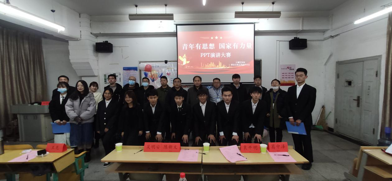 为了激发学生爱国情怀,提高学生演讲能力,同时将所学PPT制作用于实践,12月17日下午,鄂州职业大学计算机学院移动互联应用技术专业(美和易思校企共建专业)2020级大一学生特举办第二届“青春有思想,国家有力量”ppt演讲大赛。计算机学院党总支书记袁开明书记,副书记陈新文,教务处副处长吴明安处长,移动互联专业教研室胡燕刚主任、王龙主任,20级辅导员张程老师、程科博老师应邀出席,另外参加此次活动嘉宾的还有移动互联应用技术彭盼老师,明空老师,郝溦格老师,何聪老师,刘恒老师,黄田丽老师。副书记陈新文做开场致辞中表示本次演讲比赛活动意义非凡,激发同学们爱国感恩的正能量,作为计算机学院的同学们可以多参加这样有利于身心健康,提高大学生整体素质的活动。