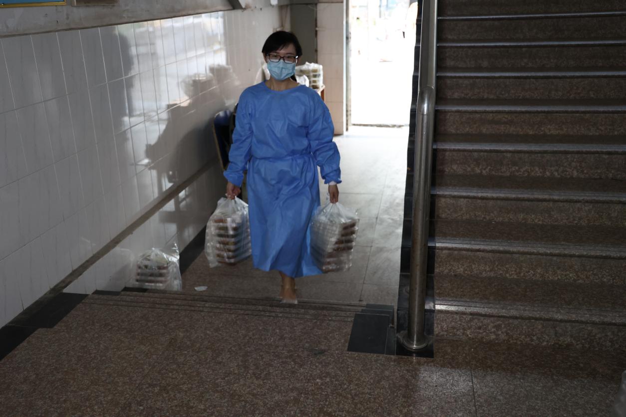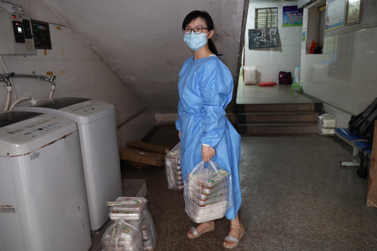 在此疫情封控期间,每天所有栋楼的志愿者都会提前统计好学生们的订餐数量,并将数据上报。老师们将会通过数据每天按时的将一日三餐准时的送到宿舍楼下,并不辞辛苦的将所有的餐送上宿舍楼,志愿者们便会通过每一层楼的需求数量送到每一层,并会秩序井然的叫每一间宿舍的一名同学出来拿餐。