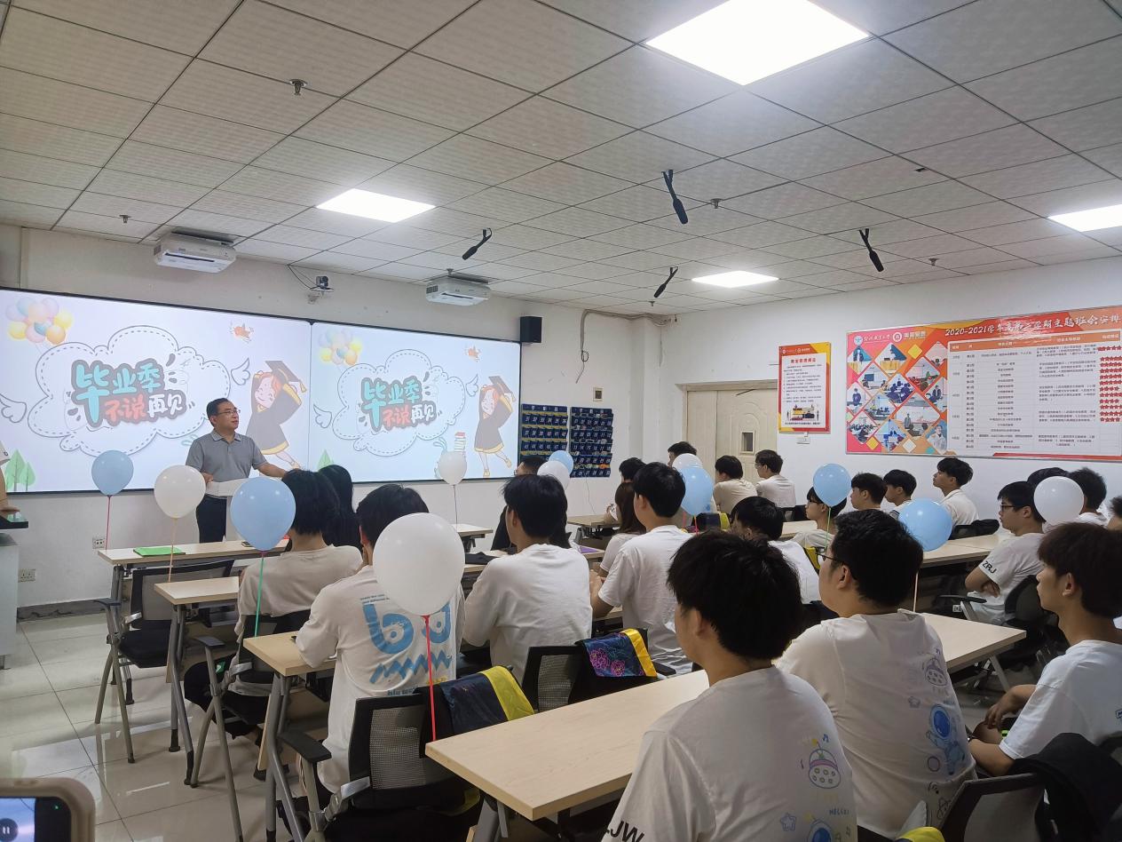 从懵懂少年到优秀毕业生的转变离不开学校的培养,更离不开领导老师的谆谆教诲。本次活动在信息工程学院陈新文院长的关怀和嘱托中拉开序幕。陈院长 给同学们送上三个关键词:成长、感恩、祝福。同学们在学校里经过三年同窗苦学,学习上收获了成长,未来同学们也将在职场上收获更多的成长;感恩老师、家长对同学们的关心、关爱与陪伴,让同学们在学习的道路上没有后顾之忧,同时也感恩每一位同学自己,是大家的坚持与努力,才让自己顺利完成了学业;最后陈院为同学们送上最真诚的祝福,祝福同学们未来的道路顺顺利利,前程似锦!