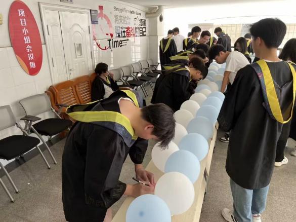 三年时光一千多个日夜,我们携手与爱同行;临别时刻有话要说,给自己、给朋友、给师长又或是那个暗恋的ta。在蓝白相间的气球掩藏下,大家写下想说的话,作为对过去的告别,同时也宣告着:青春逐梦启新航!