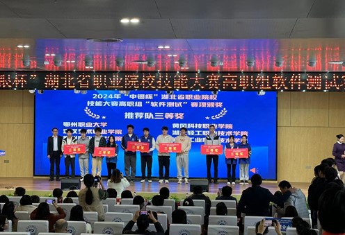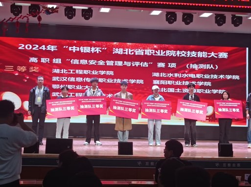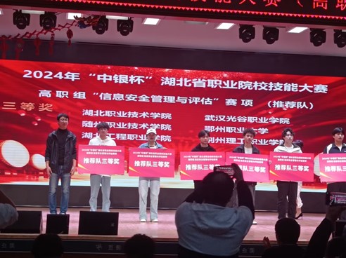 2024年3月26日,湖北省职业院校技能大赛圆满落幕,我校信息工程学院参赛队伍凭借着扎实的专业知识与熟练地操作技能,喜获佳绩,其中移动互联应用技术学生牟泽、周莉莉获软件测试赛项抽测队一等奖,李宁、张雨苗获软件测试赛项推荐队三等奖,计算机应用技术专业李粤、王永驰、高盼获信息安全管理与评估赛项推荐队三等奖,向亚娟、张宇慧、周燕姿获信息安全管理与评估赛项抽测队三等奖,指导教师胡燕刚获教师组三等奖。