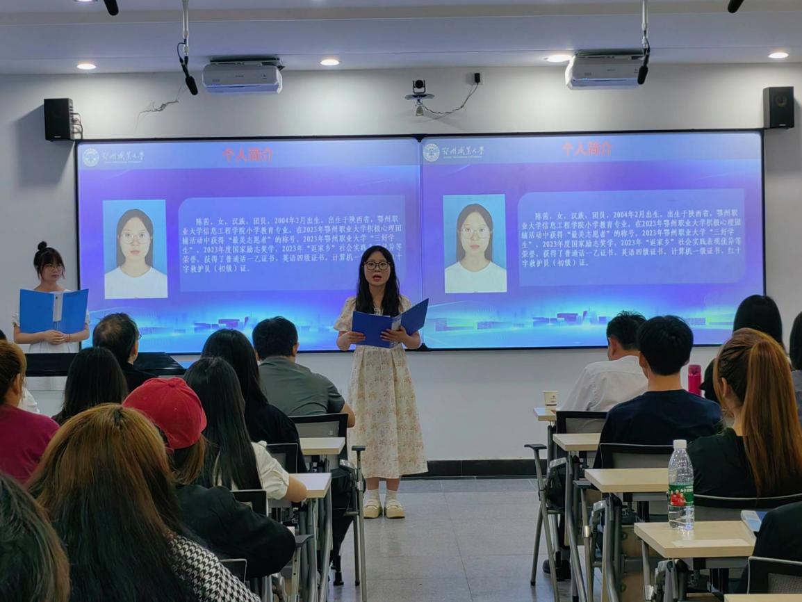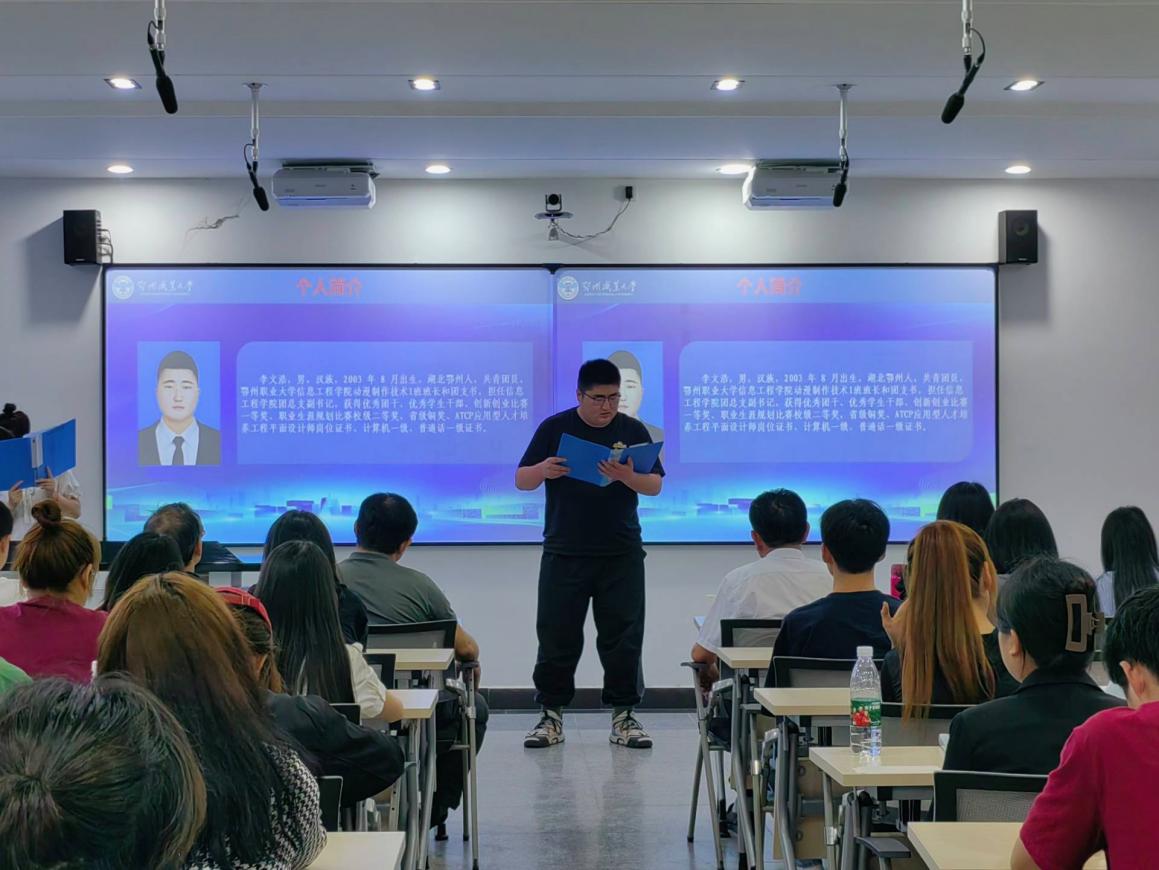 (通讯员:张程)为迎接建校四十周年,展现我校先进学生典型风采,发挥先进学生的榜样力量和导向作用,营造勤奋学习、顽强拼搏、开拓进取的良好氛围,进一步提高资助育人工作实效,2024年5月9日,信息工程学院隆重举行“榜样引领 筑梦未来”——2023 年国家奖学金、国家励志奖学金获奖学生先进典型事迹报告会,学院党总支书记袁江顺、院长陈新文、副院长肖开勇、团总支书记陈丽娟、学工处资助中心卢玉、学生资助管理老师张程、专职辅导员潘贝、朱力、学生代表参加此次报告会。