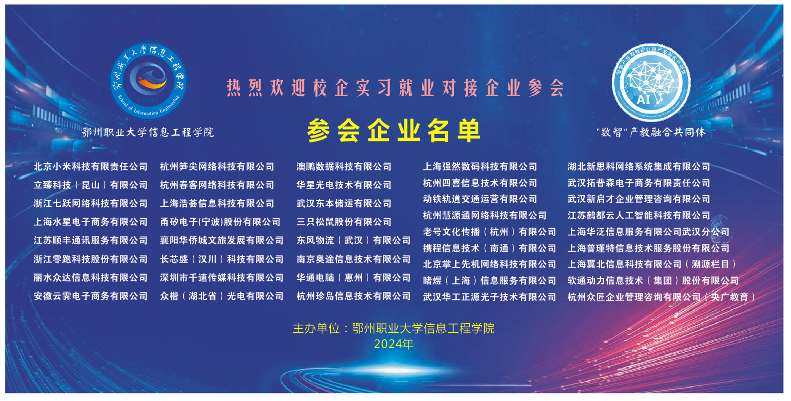 来自北京小米科技有限责任公司、浙江零跑科技股份有限公司、北京掌上先机网络科技有限公司、湖北新思科网络系统集成有限公司等45家企业齐聚一堂,为学生提供丰富的实习就业机会。